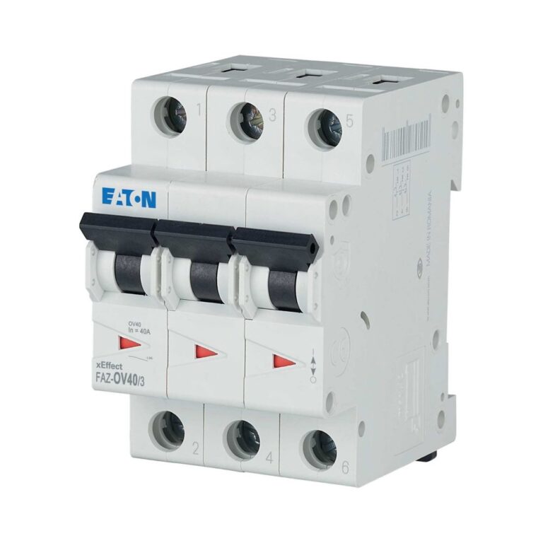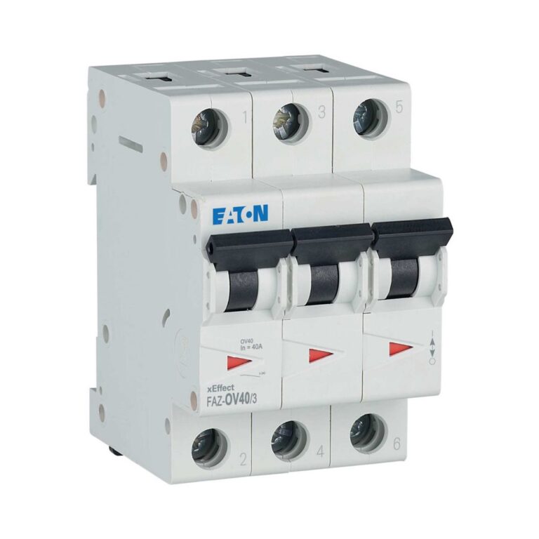 OV er spesielt tilpasset norske installasjoner og gir 1,5 kA selektivitet mot nedstrøm Eaton element- eller jordfeilautomat. I2 = 1,45, I5 = 800 A. Tiltrekningsmoment 2,4 Nm. Bryteevne Icn 230/400 V = 10 kA.