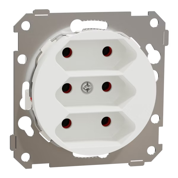 Eurostikkontakten kan benyttes påvegg i kombinasjon med en ELKO One påveggskappe. kommer med skruterminaler og leveres uten ramme.