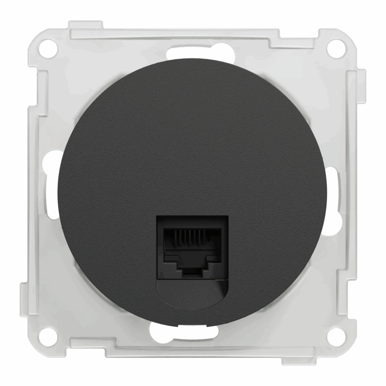 Modularuttak i ELKO One sort med ett uttak i kat. 6 UTP utførelse.