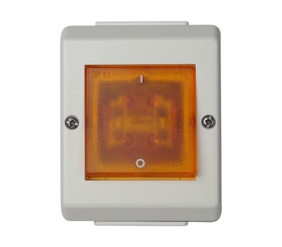 Påvegg vanntett IP55 bryter med lys og skruklemme.