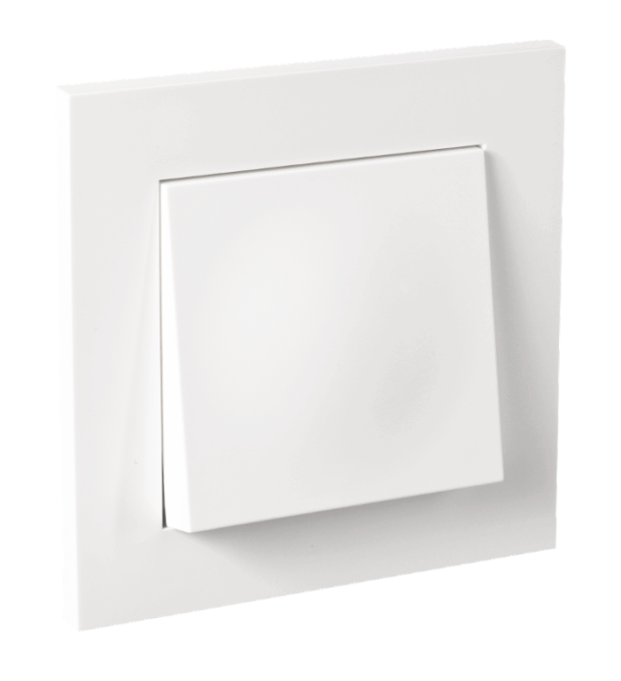 Innfelt bryter i ELKO Plus design. Bryteren er 1-polet eller vekselvender, og benyttes oftest i stue, kjøkken eller soverom der man ønsker å slå av/på lyset med en bryter. Som vekselvender kan den benyttes til å slå av/på lyset fra to steder, f.eks i en trapp hvor man kan ha en bryter oppe og en bryter nede. Dersom man ønsker å dimme lyset i den ene enden, kan en GLE dimmer erstatte den ene bryteren. Bryteren kan benyttes påvegg i kombinasjon med påveggskappe.
