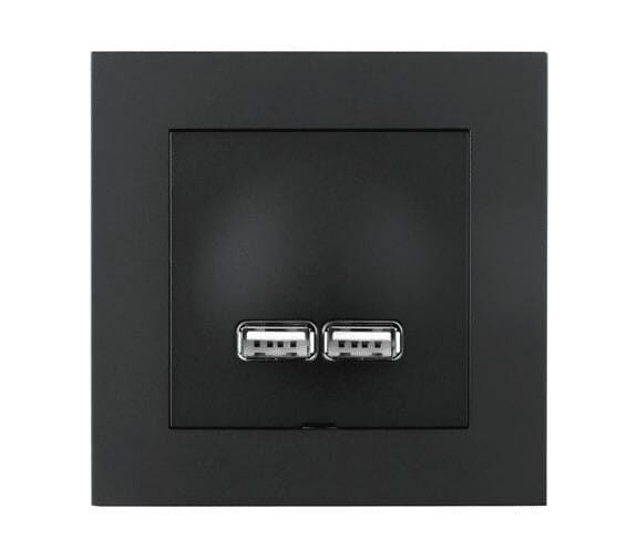 Total ladekapasitet 2,1A – 5V. Passer inn i standard veggboks, og i alle RS16 og ELKO Plus rammer.