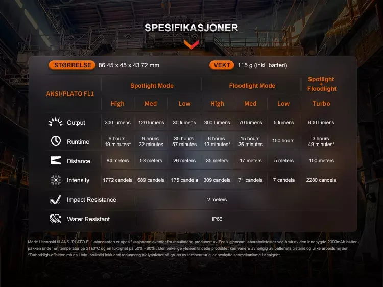 | Maks lysstyrke | 600 lumen |