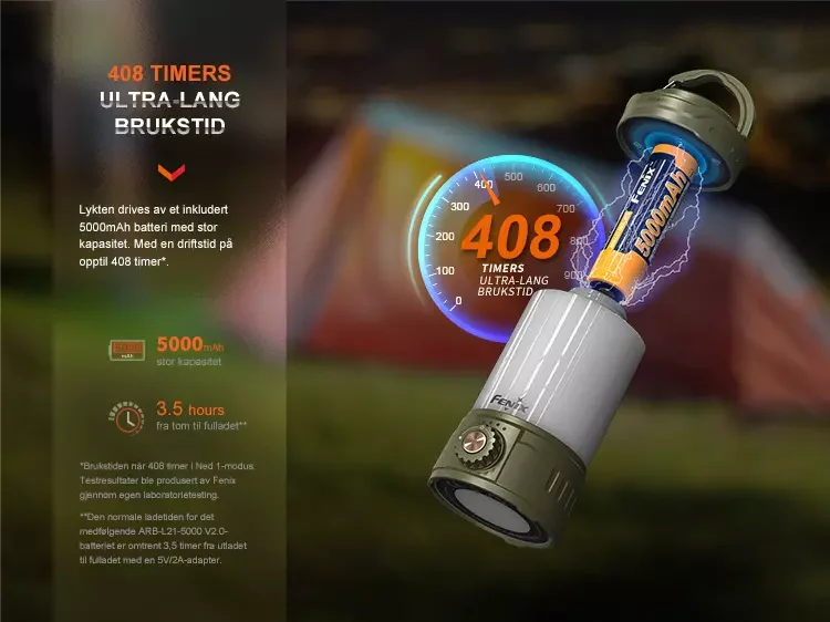 Med en maksimal lysstyrke på 650 lumen og en imponerende driftstid på opptil 408 timer, er denne lykten et perfekt valg for camping, fotturer eller andre utendørsaktiviteter.