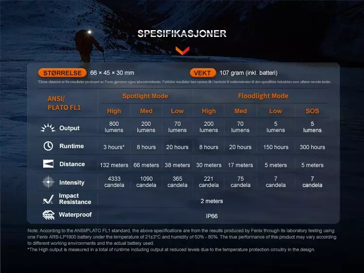 | Maks lysstyrke | 800 lumen |