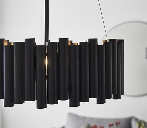 Level 3L fra Markslöjd er en moderne takpendel med rør montert i ulike nivåer, som skaper et spennende og unikt uttrykk i rommet.