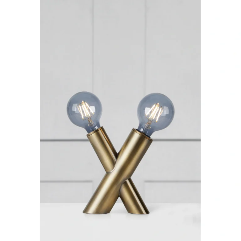 Simul bordlampe fra Markslöjd i antikk messing kombinerer et industrielt uttrykk med varme, klassiske toner.