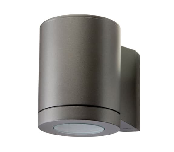 Rund armatur for utendørs montering på vegg og tak. Produsert i trykkstøpt, pulverlakkert aluminium med sort, hvit eller grafitt overflate med skjerm i herdet glass. Finnes som opp-/nedlys eller kun nedlys. Armaturen har en utskiftbar GU10 LED-lyskilde (inkludert), og er dimbar med faseavsnittdimmer. Enkel montering med veggbeslag med stikkforbindelse til lampen, to kabelinnganger og mulighet for både synlig og skjult kabling. Kan monteres på hjørne med hjørnefeste (selges separat). Beskyttelsesklasse IP65, slagfasthet IK07.