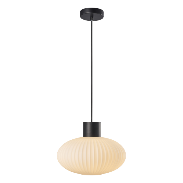 Mika Pendel Ø30cm E27 Opal er en lampeserie for deg som ønsker å få et stilig preg på rommet du vil belyse.