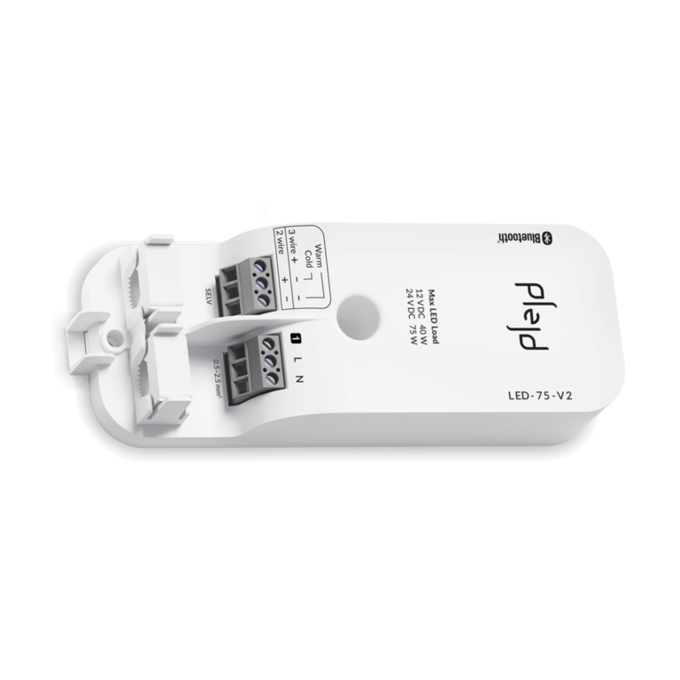 LED-driver 75 W for bruk til 12/24 V DC tunable white eller enfargede LED-striper for inntil 75 W belastning. LED-75 har en kontrollinngang.