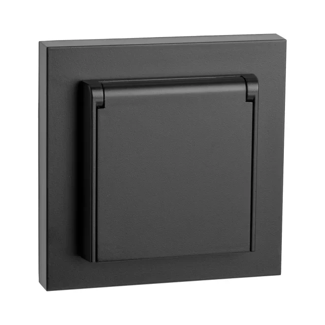 Den sorte stikkontakten har gjennomfarget sort materiale og gjør den robust mot skraper og merker.