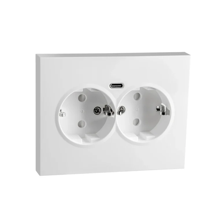 Dobbel stikkontakt med integrert 30W USB-C lader for montering i 1.5 veggboks.
