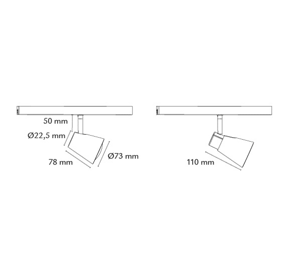 Skinnespotlight til Zip 230V skinnesystem med utskiftbar GU10-LED.