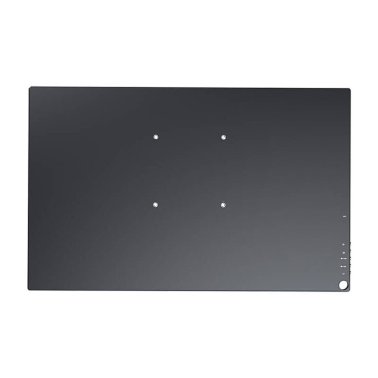 Skjermens hus er laget av slitesterk aluminium og ABS, noe som gir holdbarhet og et elegant utseende.