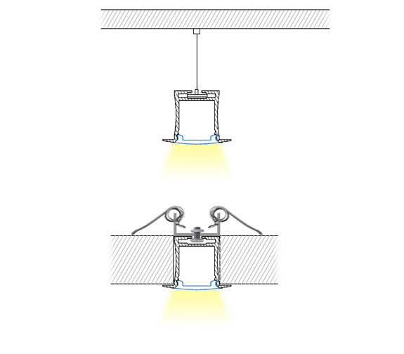 Lav, utenpåliggende aluminiumsprofil designet for to rader med LED-striper. Enkel montering med medfølgende metallklips for et stilrent og profesjonelt resultat.
