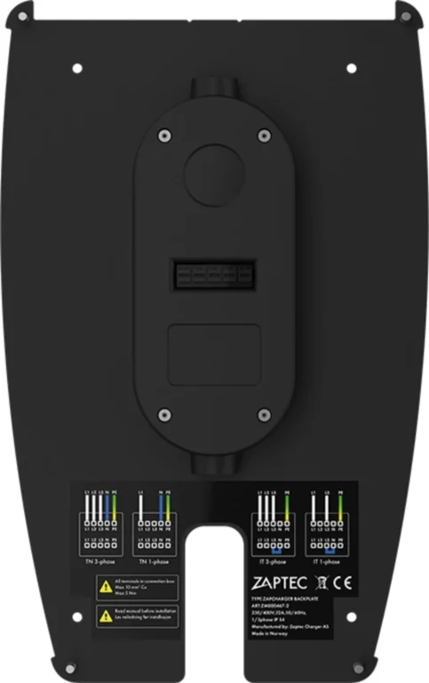 Bakplaten er en original monteringsplate utviklet spesielt for Zaptec Pro – ladestasjoner (7,4–22 kW IT/TN).